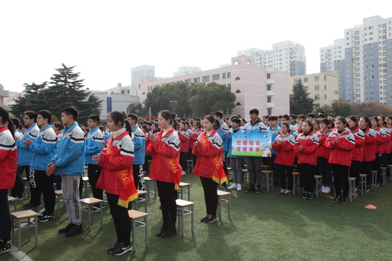 首先,邗江区实验学校九年级全体同学进行奋战百日、超越自我、再创辉煌;决胜中考宣誓。接着,一批品学兼优的初三学生登台领取新能源慈善教育奖学金,有50名学生获得一等奖,每人奖金500元;有100名学生获得二等奖,每人奖金300元;有200名学生获得三等奖,每人奖金100元。本次共发奖学金75000元。