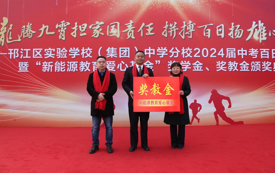 “龙腾九霄担家国责任,拼搏百日扬雄心壮志。”3月8日上午,邗江区实验学校(集团)中学分校举行2024届中考百日誓师大会暨“新能源教育爱心基金”奖学金、奖教金颁奖典礼,江苏新能源置业集团总裁王秋云、邗江区教育局副局长、邗江区实验学校校长葛光出席活动。 10时整,邗江区实验学校九年级学生齐聚该校青春广场。颁奖典礼在《我相信》《相信自己》《怒...